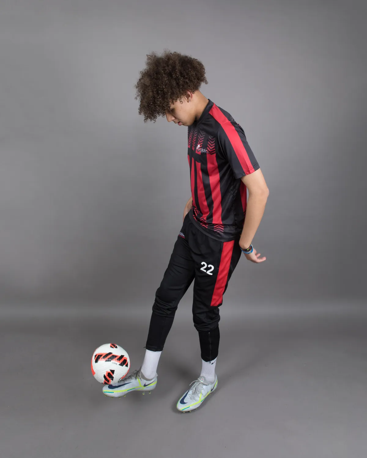 Training kit containing elements of our Classic Club DNA. Made for players, coaches, spectators alike our red and black nalim training shirt holds onto key colours of the Escalate Way Code of Conduct Acronym.